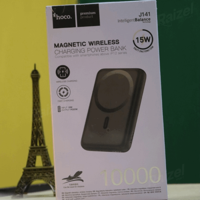 The Hoco J141 Magnetic Wireless Charging Power Bank offers a sleek design with strong magnetic hold, fast wireless charging, and a reliable battery backup. Perfect for iPhone MagSafe and compatible devices, it ensures hassle-free charging anytime, any where.