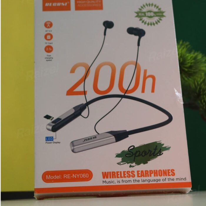 The RECRSI RE-NY060 Wireless Neckband delivers powerful sound with deep bass and clear vocals. Featuring Bluetooth connectivity, flexible neckband design, magnetic earbuds, and long-lasting battery life — perfect for music, calls, and workouts.