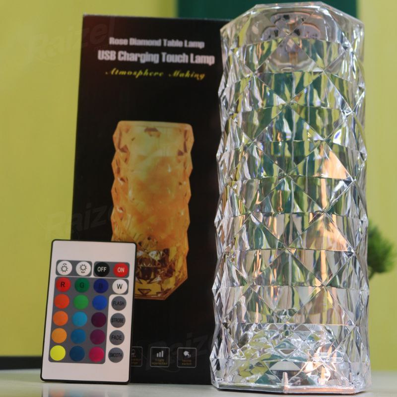 The Rose Diamond Crystal Table Lamp brings elegance to your room with a stunning diamond-cut design. Features touch control, adjustable brightness, and USB charging for modern convenience.