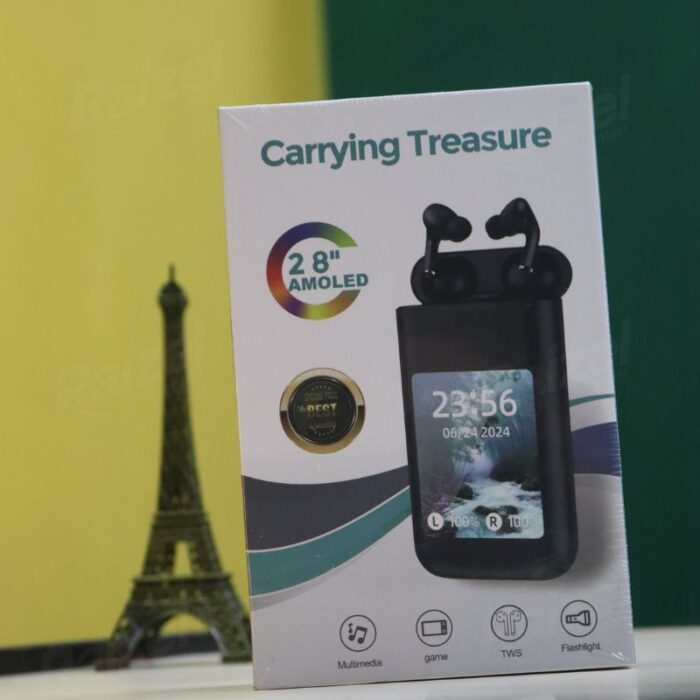 These unique TWS earbuds come with a 2.8-inch AMOLED touchscreen charging case that also doubles as an emergency flashlight. Enjoy premium sound, smart control, and added convenience wherever you go.